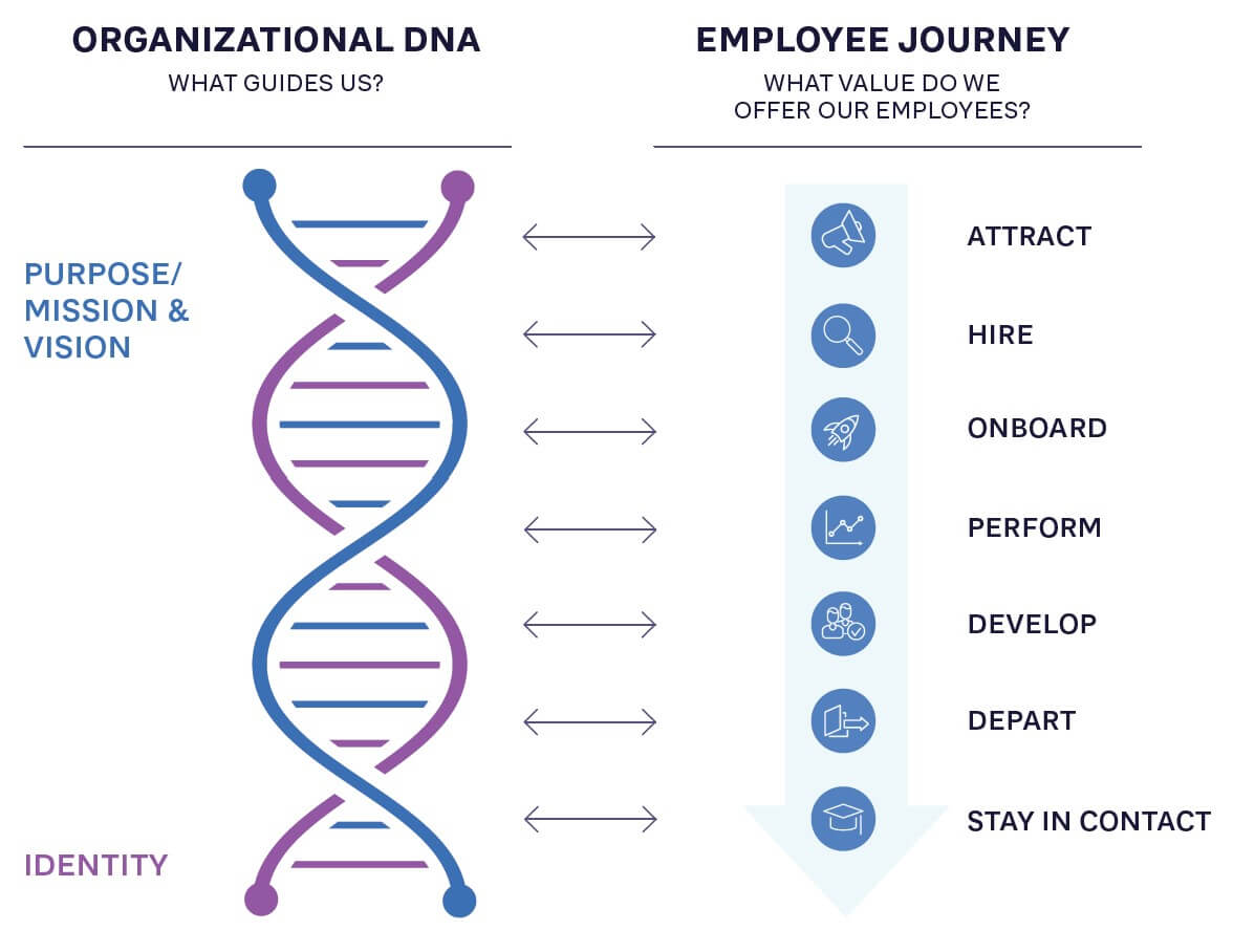 Figure 3. Organizational DNA (purpose and identity) in relation to the employee journey