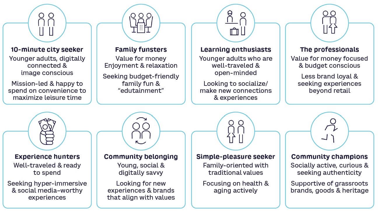 As with any program that aims to be customer centric, the key starting point for cities is to understand their audiences and those audiences’ needs and requirements. For example, residents, commuters, and tourists will likely have differing expectations. Different segments within these demographics, such as age groups and lifestyles, will also have a variety of requirements, as the example in Figure 2 shows.