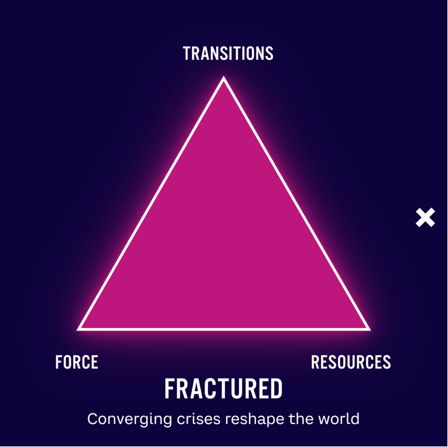 - Fractured. The world is being ruptured by the convergence of three sets of exogenous crises: crises relating to planetary, technological, and geopolitical transitions; crises over resources such as energy, water, and critical materials; and crises of force as power reemerges as a major mode of regulation. Notably, crises relating to transitions, resources, and force tend to intersect and reinforce each other. For example, countries are competing fiercely for rare earths that are essential for modern technologies, national defense strategies, and the green energy transition.