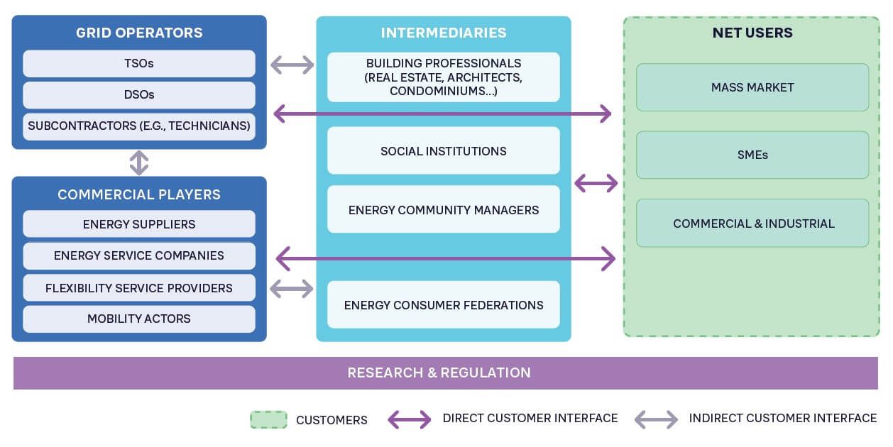 Utilities should start by analyzing evolving customer needs and characteristics while understanding how to leverage other stakeholders (intermediaries in Figure 2) to deliver customer services. For example, when a utility provides services to a housing intermediary, it is indirectly serving the building tenant, thus the net user. Based on this, some intermediary groups could also be identified as segments for delivering specific services.