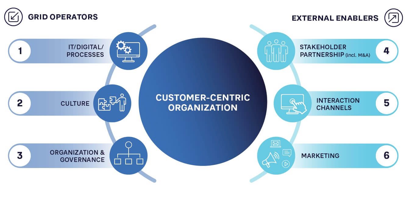 As the energy landscape becomes more decentralized, suppliers and grid companies should focus on a customer-centric approach through the following actions: